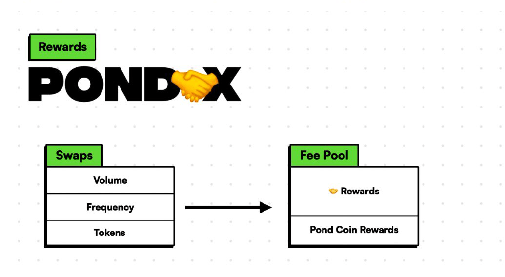 Liquidity from different places comes together in the Pond D🤝X platform. When people make trades, the fees they pay are collected and given as rewards to those who are actively using the platform. The more you trade, the more rewards you can get, and the type of tokens you trade also affects your rewards.
